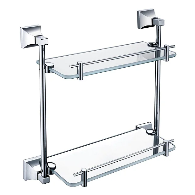 The Chancery range from Heritage features a sleek and sophisticated Art Deco inspired design. This Double Glass Shelf provides ample and practical storage for shampoo bottles and toiletries etc. Crafted to the highest standards and available in a shiny polished chrome finish.