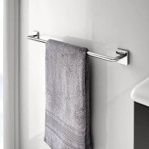 The Victoria 600mm Towel Rail from Roca offers a functional and timeless look to any bathroom. It can be fixed by screws or by the supplied adhesive which has a high resistance static load of 5kg. Suitable for use in commercial areas.